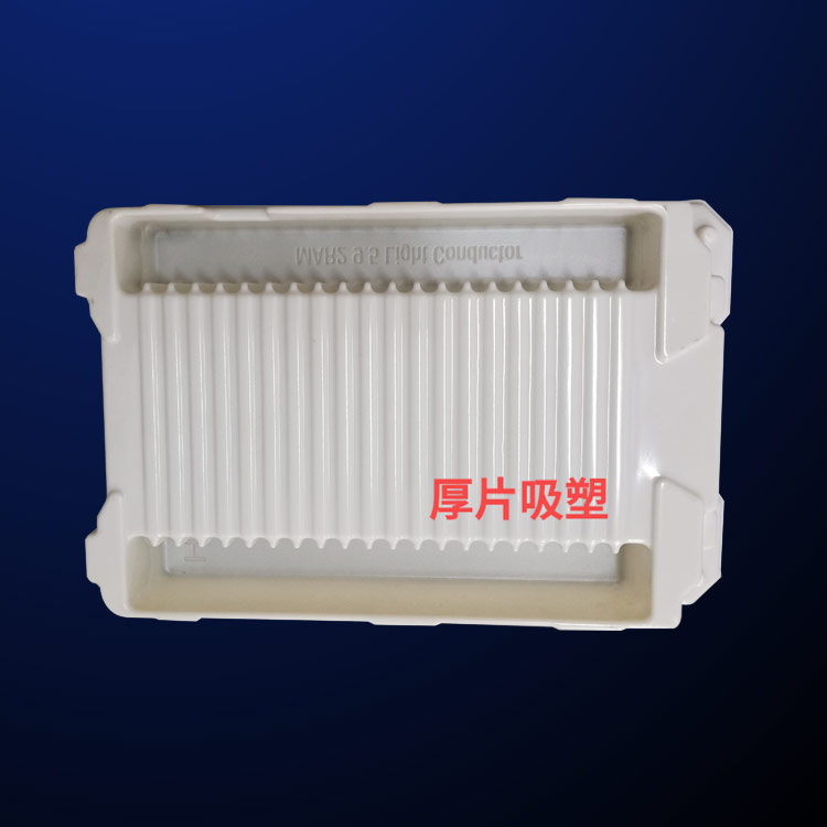厚(hòu)片吸塑(su) 又稱厚(hòu)闆吸塑(su),是指使(shi)用材料(liào)厚度超(chao)過2mm,不能(neng)在全自(zi)動工具(ju)上吸塑(su)成型,必(bì)須采用(yòng)厚片吸(xī)塑的半(bàn)自動吸(xī)塑成型(xing)機進行(háng)加工和(he)生産。